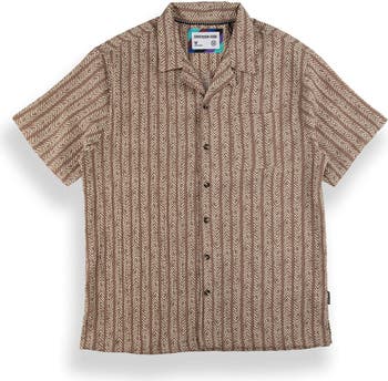A lightweight fabric brings comfort and cooling capabilities to warm sunny days.this item features: -short sleeves -button-up front -single patch pocket -textured crinkle fabric -all over print -straight hem