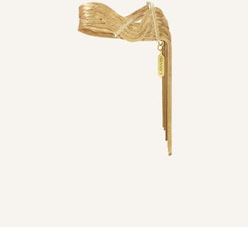 Evoking the emblematic ribbon, Jeanne Lanvin's iconic signature and symbol of love, this fringed bracelet reveals a cascade of delicately braided golden chains. Its design, blending structure and lightness, reflects the House's expertise, for a piece of jewelry with a bold and refined character.