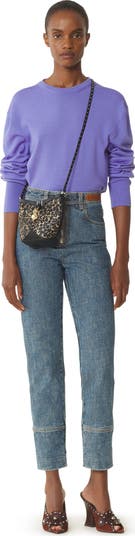 This merino wool sweater features a grosgrain ribbon on the back, inspired by the House's archives, for a feminine and elegant touch. The simple, rounded lines add a touch of elegance to a casual daytime outfit.