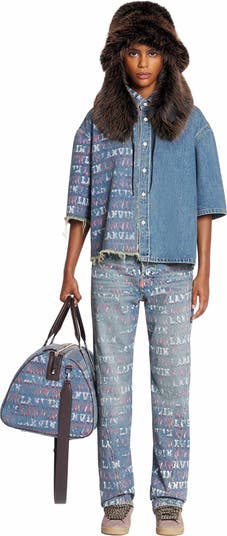 For this collection, the LANVIN LAB x FUTURE collaboration has given rise to exclusive prints, like the one featured on these jeans. The print revisits the iconic House of Lanvin logo, in a motif of faded tones all over the piece. The loose, twisted fit blends with Lanvin elegance for a contemporary look with a unique style.