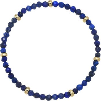 Deeply hued lapis lazuli beads interspersed with 14-karat-gold accents bring vibrant color and texture to this stretch bracelet perfect for stacking or wearing by itself.