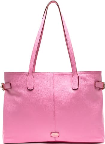 Signature logo accents and richly tumbled leather shape an Italian-made tote featuring a voluminous profile and suspended from a pair of elongated shoulder straps. An optional trolley sleeve delivers travel-ready convenience.