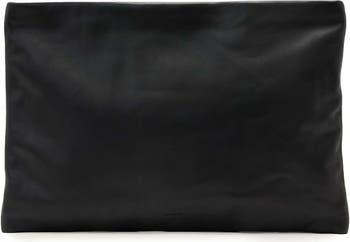 Subtle logo debossing adds a signature flourish to a slender clutch featuring an oversized profile perfect for stylishly carrying your essentials.