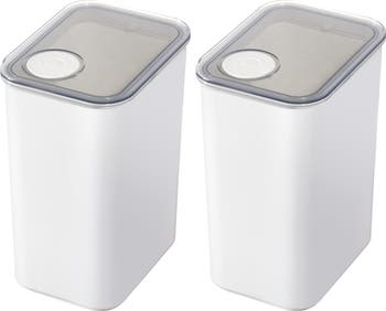 - AIRTIGHT CANISTER - The iDesign Eco System Airtight Kitchen Canister elegantly decants flour, sugar, rice, and other dry goods, lending a clean, classic look to any pantry or open shelving; The airtight, lift-off lid keeps contents fresh, while the clear container allows you to keep an eye on supply levels so you will never run out of your favorite ingredients again; Its stackable, space-saving design makes this an instant pantry favorite; Set of 2