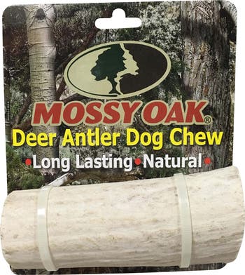 MOSSY OAK: DEER ANTLER DOG CHEW - LARGE - Deer Antler Dog Chews will give your best friend weeks to months of satisfying chewing pleasure. Their firm, durable texture helps keep dogs focused and entertained, offering a rewarding outlet for natural chewing instincts. They are all natural with no added ingredients or preservatives. This simple, single-ingredient chew provides peace of mind for pet owners who want a clean and wholesome option free from unnecessary additives. Antlers are cut from antlers that have been naturally shed and are not a by-product of a processing facility. This responsible sourcing ensures that each chew is obtained humanely and maintains the natural strength and integrity dogs love. Tens of thousands of dogs have enjoyed these chews since their introduction a few years ago. Deer Antlers are great for dental health and help scrape away unhealthy plaque and tartar from dog's teeth while providing hours of chewing pleasure that dogs love. As dogs gnaw, the naturally abrasive surface supports fresher breath and contributes to better oral hygiene over time. The "Large" is appropriate for dogs up to 30-60 pounds. Each antler is crafted with the same dedication to durability and pet safety that QT DOG has been known for since 1997, ensuring a reliable chew for dogs. NOTE: Deer Antlers are not a food item and do not provide any nutritional benefits, only the satisfying chewing experience that dogs crave. Please supervise your pet when giving it any type of chew. Always provide your pet with plenty of water when using these chews.