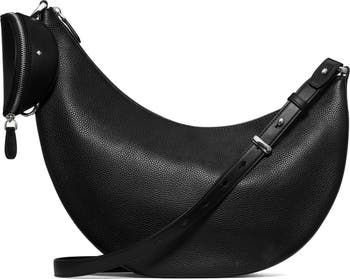 Rich pebbled leather and a curved topline highlight the crescent shaped profile of a versatile bag fitted with a detachable zip pouch that can be worn solo. An adjustable, removable crossbody strap converts for a multitude of styling options.