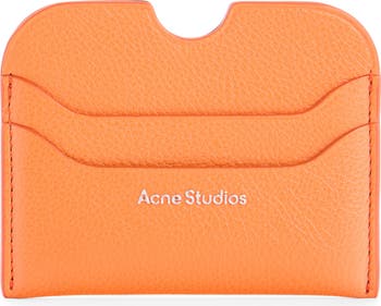 Foiled logo branding adds a subtle stamp of shine to a slim, multislot leather card case in a bold hue that makes it easy to find in the abyss of your favorite carry-all.