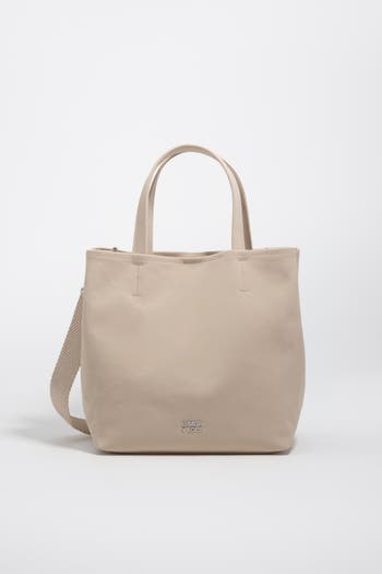 Large shoulder bag with two handles and an adjustable fabric strap. Finished with leather details and a metallic BIMBA Y LOLA logo, it features a press-stud fastening and a practical interior pocket. Fabric-lined interior with BIMBA Y LOLA label.