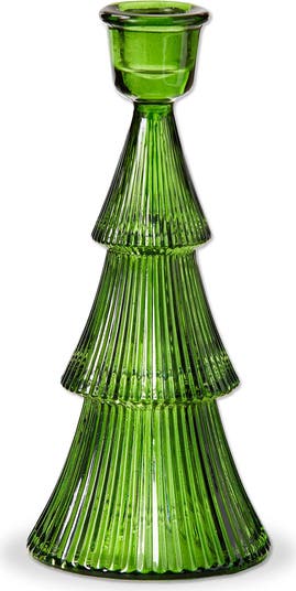 - Add a touch of nature to your holiday decor with our Large Green Glass Ribbed Taper Candle Holder perfect for gift giving this season.