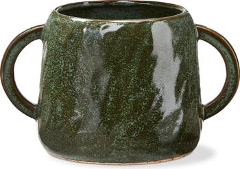 - inspired by nature, this handled planter is made of stoneware and features a reactive glaze finish. includes drain hole with silicone plug. pairs with a variety of tag's fantastic selection of must-have plant companions from planters to pots for the home.