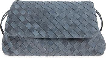 This spacious shoulder bag is masterfully crafted from strips of velvety suede masterfully woven in the brand's signature intrecciato technique, which brings visually stunning texture and exceptional durability to the piece.