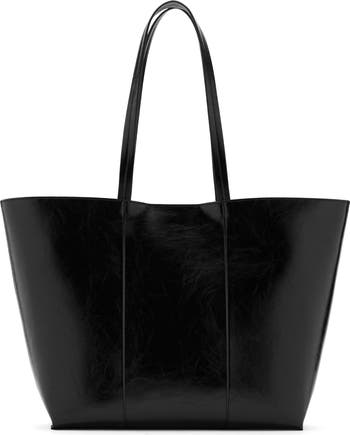 Lightly textured leather shapes a voluminous shopper bag featuring a roomy interior and elongated shoulder straps for on-the-go convenience.