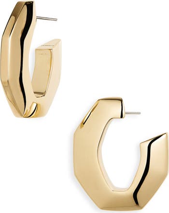 A geometric silhouette and polished finish brings sharp shine to your night-out ensembles.