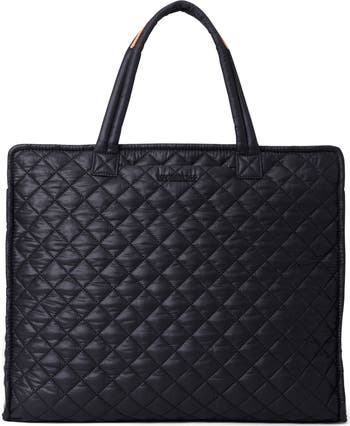 Polished hardware and quilted nylon lend signature appeal to a spacious tote fashioned with multiple straps for styling versatility and hands-free carry.