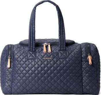 Signature diamond quilting details a roomy gym bag with a detachable crossbody strap and ample storage, inside and out, including three removable zip pouches.