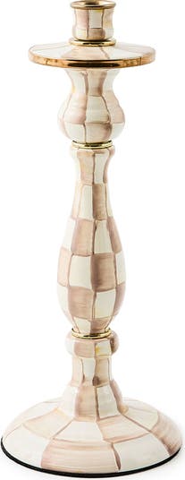 Large Mocha Check Candlestick Holder