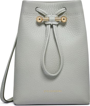 Handcrafted in Spain from beautifully grained calfskin, this stone-colored bag features a drawstring closure pierced with Strathberry's signature Music Bar hardware.