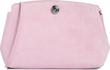This softly slouched pouch in plush pink suede tucks neatly under your arm, then switches to hands-free with the optional shoulder strap. A signature mandala-shaped metal pushlock keeps essentials secure and adds a polished touch.
