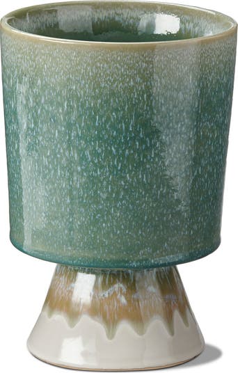 The pedestal large planter brings a vibrant and natural vibe to your interior decor. showcasing a stoneware construction and reactive glaze finish, this decorative planter gives your household foliage a beautiful upgrade. this planter is for decorative use only and is not water tight. holds up to a 6" drop in pot.