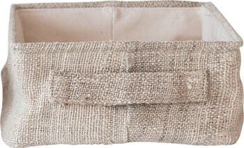 Large Rectangular Hemp Fiber and Metal Bin with Cotton Canvas Lining and Handle