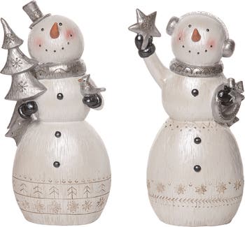 - Enhance your holiday decor with the Transpac Large Resin Metallic Snowman Figurine Set, featuring two charming 12inch snowmen crafted from durable resin, perfect for indoor tabletop displays this Christmas. Easy to maintain: Simply spot or wipe clean to keep your festive snowman figurines looking their best. Enhance your holiday decor with the Transpac Large Resin Metallic Snowman Figurine Set, featuring two charming 12inch snowmen that add a festive touch to your Christmas home decorations. Whats Included: 1 set of these beautiful, easy to care for accent decorations.