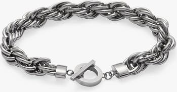 Bold texture meets timeless style in the Large Rope Chain Toggle Bracelet. Featuring an 8mm rope chain and a polished toggle closure, this bracelet brings statement-worthy dimension to your everyday look. Wear it solo for effortless impact or layer it with your favorite pieces for a modern, stacked vibe.