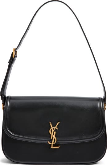 The label's interlocking YSL Cassandre logo secures the flap of this calfskin shoulder bag that's structured in a roomy silhouette for a look that's always in season.