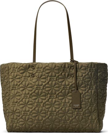 Signature spade quilting and tonal leather trims define a spacious tote suspended from slender shoulder straps and topped with a bridge-clip closure to secure your items.
