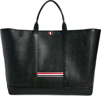 Tricolor-stripe accents bring the label's signature flair to this roomy tote made in Italy from richly pebbled leather.