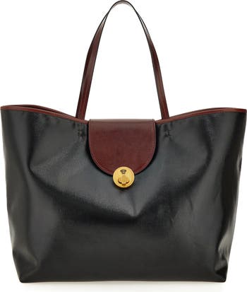Debuting on the label's spring '26 runway, this spacious tote is crafted from glossy coated canvas with calfskin leather trim. Hand-painted edges bring signature attention to detail, while antiqued turnlock hardware with a Medusa accent brings the house's iconic symbolism of power and beauty.