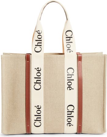 Chloé's classic logo stands out at the sturdy straps of a roomy tote crafted from linen canvas with topstitched leather trim.