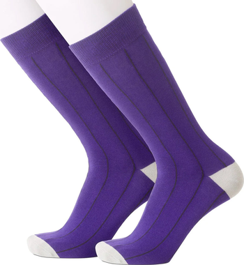 Slender stripes of black run the full length of these bright blue socks with their grey heels and toes. If your feet are happy, your day is on its way to being a good one. That's why our socks are not only durable and comfortable, they add another level of style to your wardrobe, too. These 176-needle count socks are soft and strong - with hand-sewn toes for a smooth finish.