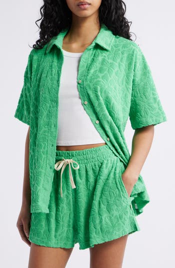 Las Dalias Short Sleeve Terry Button-Up Shirt