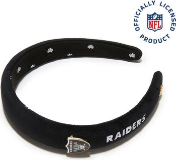 Introducing our officially licensed Lele Sadoughi x NFL collection. Cheer for your team in style with our exclusive NFL headbands. This Las Vegas Raiders headband features details using official team logos and artwork from the NFL archives.