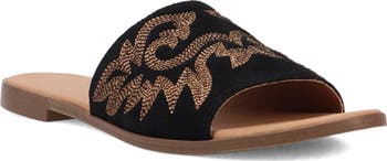 Classic Western topstitching brings the right vibe to this suede slide sandal cushioned for everyday comfort.
