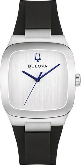 Strap/closure: Silicone strap with adjustable buckle closure.