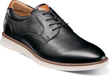 Intricate stitching and a smooth plain toe add timeless sophistication to a leather derby set on a cushioned insole and flexible rubber sole.