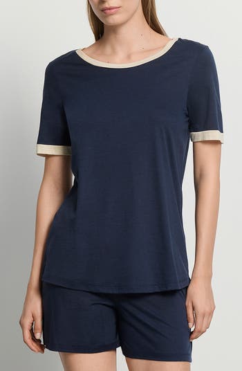 Drift off to dreamland in the comfort of these soft cotton-modal jersey pajamas framed by sporty contrast trim.