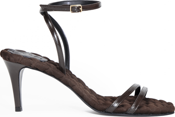 Refined and sculptural, our 70mm heeled sandal is suited to formal attire. Delicate, ultra thin straps encircle the foot and fasten at the ankle with a dainty buckle, creating an elegantly minimal profile. Crafted from plush, vegan brushed-effect materials, the Laura provides lasting comfort and timeless style.