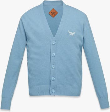 Unisex V-neck cardigan with Laurel logo embroidery at chest