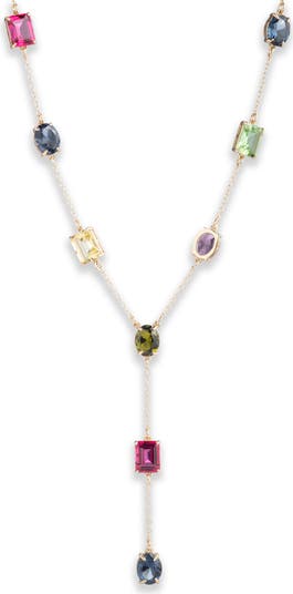 Colorful stone stations add playful shine to this Y-necklace that's perfect for anchoring your stack.