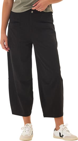 Woven in a soft organic-cotton blend, these barrel pants are right on trend with a superhigh waist, a relaxed fit and curved legs that end above the ankles.