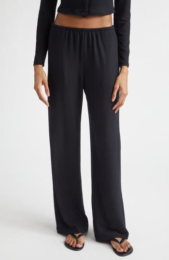 A narrow elastic waist and subtle side-seam pockets keep the lines clean and minimal on these flowy wide-leg pants.