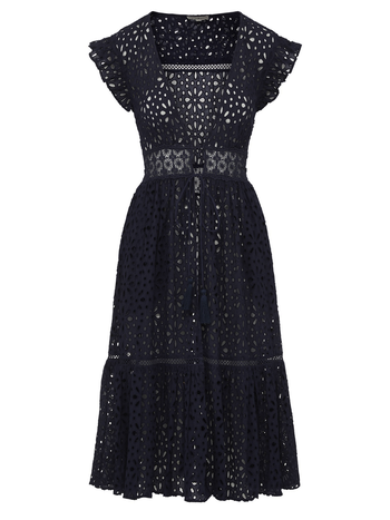 Wrap yourself in elegance with our lace beach cover-up Lauren Dress. Crafted in allover embroidered cotton eyelet, this piece exudes sophistication and effortless style. The robe-style design offers versatility, allowing you to layer it over your swimsuit for a super-chic beachside look or pair it with your favorite outfit for a touch of bohemian charm. The lightweight and breathable fabric ensures comfort under the sun, while the intricate lace adds a romantic touch to your beach ensemble.
