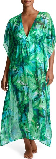 Evoke mod throwback sophistication in this chiffon caftan fashioned with a drawstring waist that allows you to easily adjust the fit.