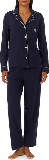 Classic menswear-inspired PJs are updated in an ultra-comfy stretch-knit fabric with contrasting piping.