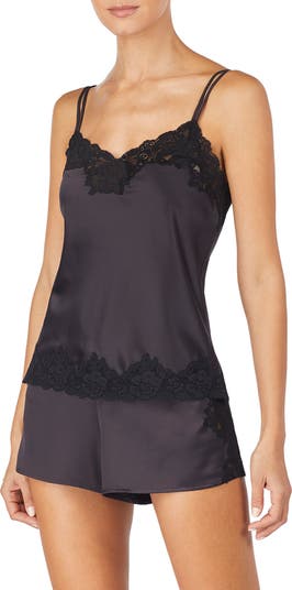 Slink into the lustrous satin of these lace-trimmed short PJs before falling fast asleep.