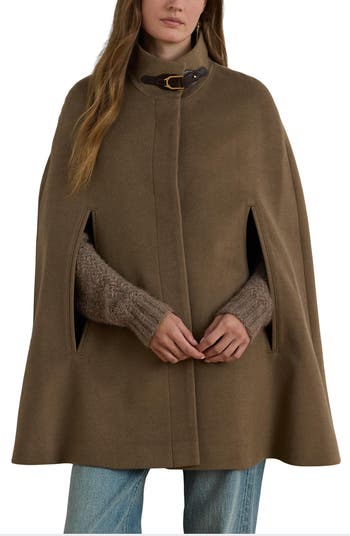 A versatile hue lends timeless polish to this classic wool-blend cape finished with the simple elegance of a belt closure at the collar and welted arm slits.