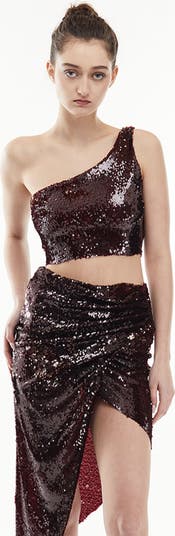 If you like simplicity with a twist, this crop top is for you. This modern and stylish top is designed with a sleek one-shoulder silhouette, offering a unique and contemporary look. It's the perfect top, crafted from sequins fabric, combine with jeans and sneakers or under a blazer and you're set.