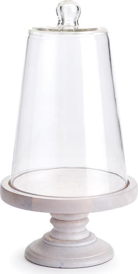 Classic in design with a whitewashed turned wood base, this cloche is light and lovely. A beautiful way to display natural elements, flameless candles or ornaments.